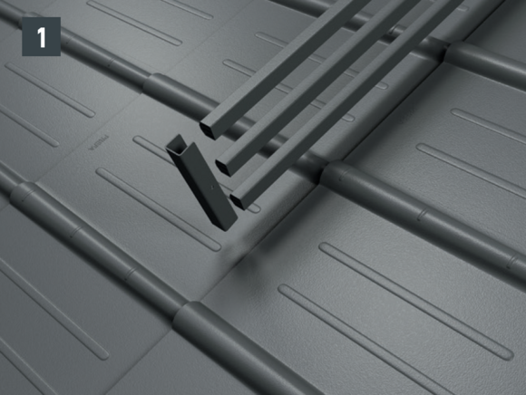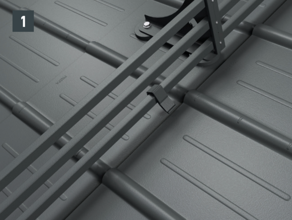 I nasi fermaneve devono essere posizionati su tutta la superficie del tetto su ogni fila non tagliata, in conformità con lo schema di posa calcolato (eccetto che nell'area in cui si trovano elementi accessori e strutturali). Nei luoghi esposti, dovrebbero essere previsti ulteriori sistemi fermaneve, se necessario. È necessario tenere conto degli elementi strutturali come abbaini, comignoli, ecc. in conformità con le norme.