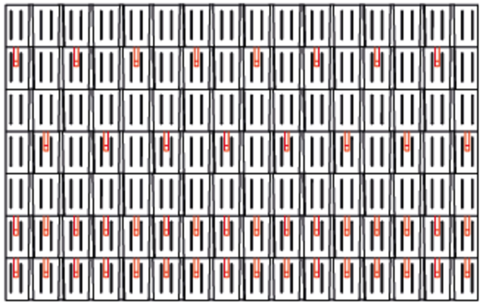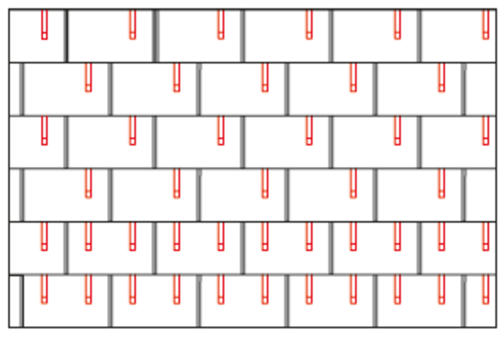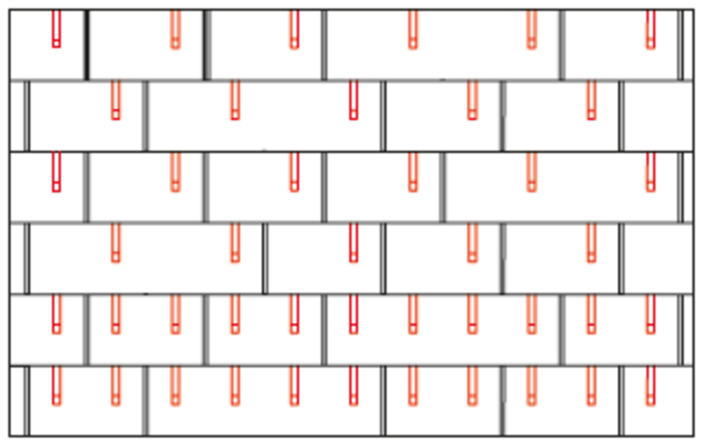 Sulle tegole vengono montati 2, 4 o 8 nasi fermaneve per m² (vedi tabella qui di seguito: schema di posa TE1, TE2 e TE3). Sulle prime due file i nasi fermaneve devono essere montati su tutta la lunghezza.