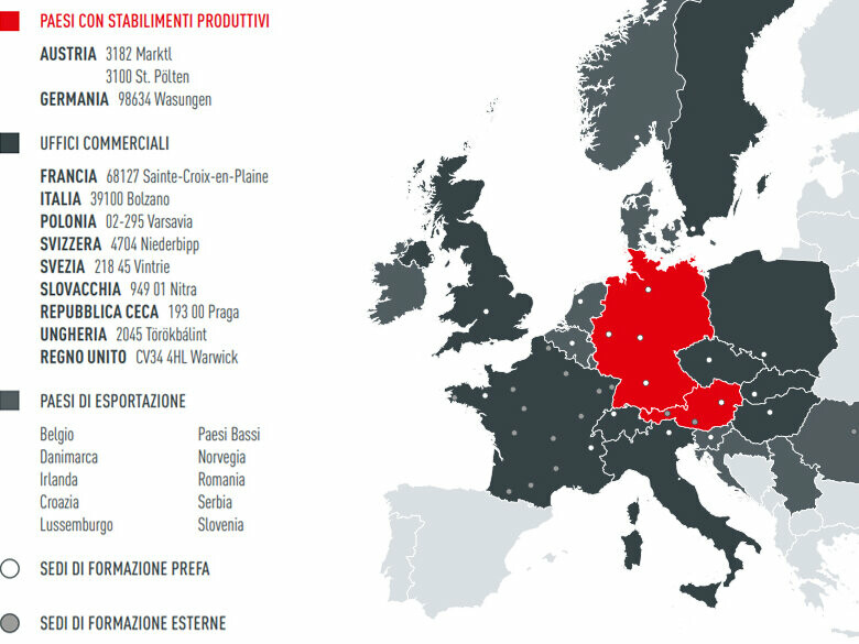 Da oltre 80 anni la PREFA Aluminiumprodukte GmbH si è fatta conoscere e apprezzare a livello europeo per la progettazione, la produzione e la distribuzione di sistemi per tetti, fotovoltaici e facciate in alluminio. Complessivamente, il gruppo PREFA occupa circa 790 collaboratori in 19 paesi. Gli oltre 5.000 prodotti di alta qualità vengono interamente prodotti in Austria e Germania. Ogni anno vengono formati 4.850 partner posatori in 32 centri di formazione in Europa. L'azienda tradizionale PREFA fa parte del gruppo dell'industriale Dott. Cornelius Grupp, che conta 9.000 collaboratori in più di 40 sedi di produzione in tutto il mondo.