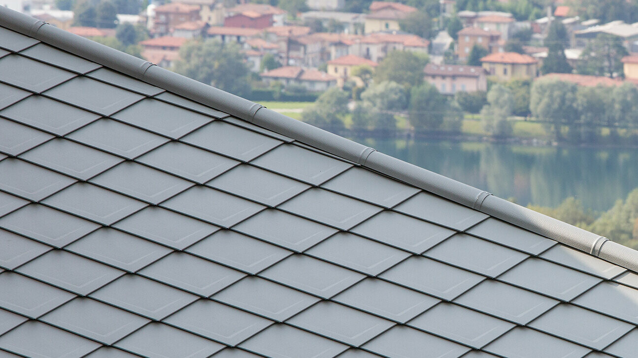 Per la ristrutturazione sono stati utilizzate le scaglie PREFA 29 × 29 in P.10 grigio pietra, che si fondono armoniosamente nell’architettura della cittadina, conferendo al tempo stesso un’eleganza intramontabile. Le robustissime scaglie in alluminio assicurano una protezione affidabile dagli agenti atmosferici. Grazie al peso contenuto di questo materiale, la struttura esistente non risulta sovraccaricata, mentre la speciale finitura P.10 garantisce una lunga durata del colore.